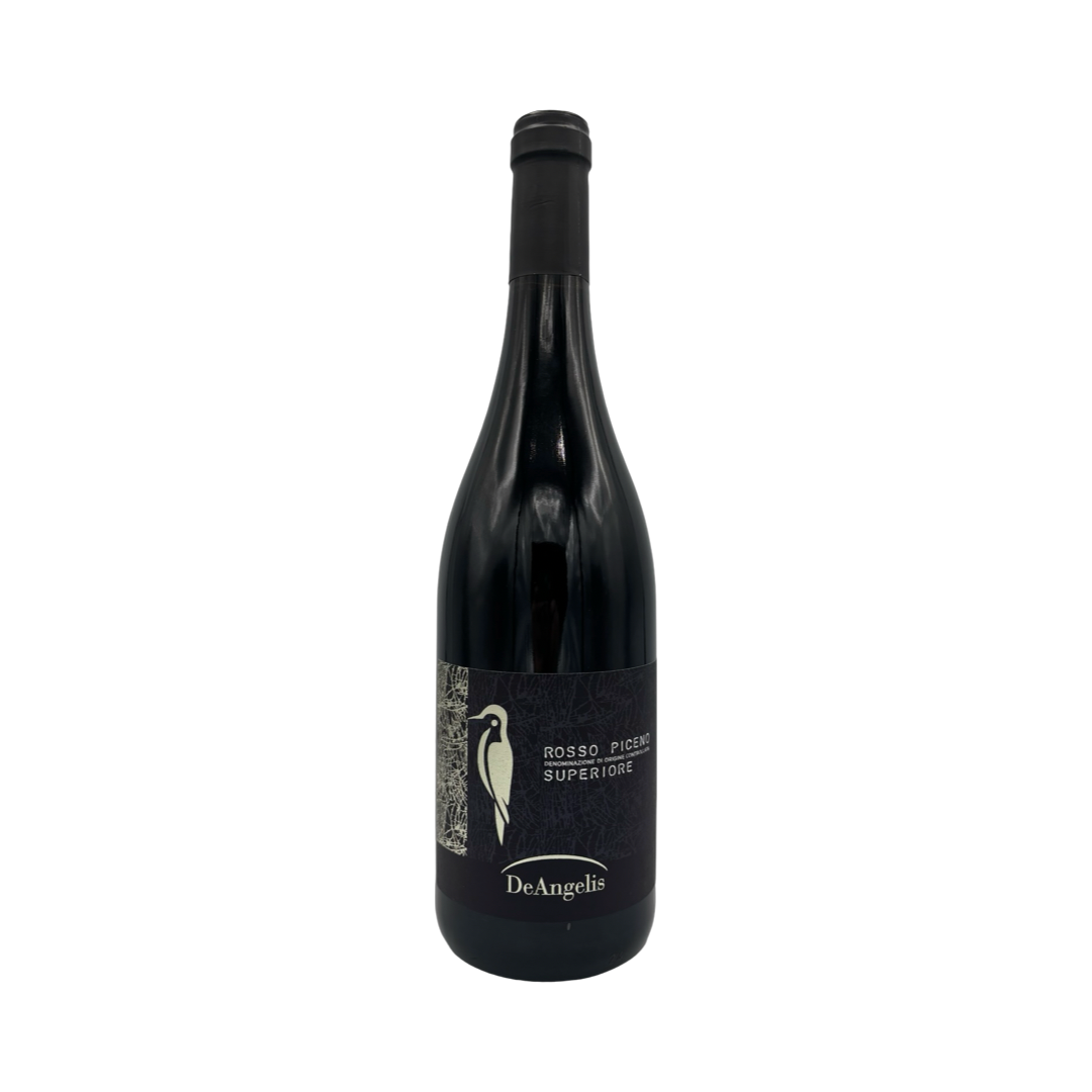 70% Montepulciano and 30% Sangiovese from Rosso Piceno, Marche, Italy; medium plus bodied and dry with notes of sour blackberry, stewed berries, dried bay leaf, leather, and chocolate, with medium acidity, inky tannins (that soften with air), and a dry chalky finish. Organic