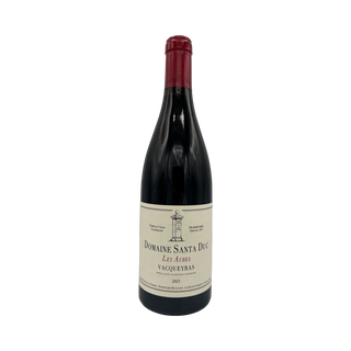 80% Grenache and 20% Syrah from Vacqueyras, Rhône Valley, France; medium bodied and dry with notes of black cherry, dried strawberry, artichoke, wet mushroom, smoke, meat, and chocolate, with well-integrated oaky undertones, medium plus acidity, a supple texture, dry chalky tannins, and lingering earth on the finish. Organic, Sustainable, Biodynamic, Vegan