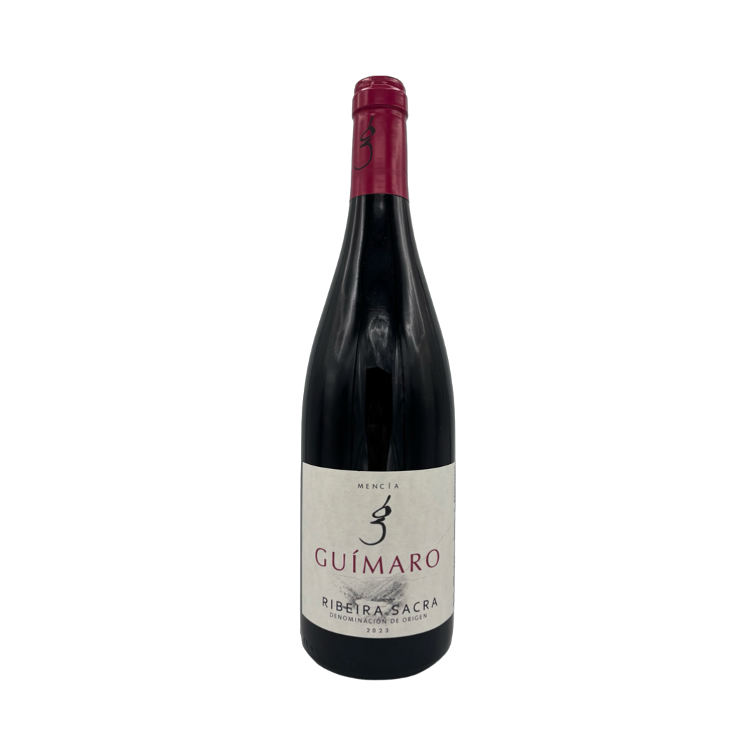 "Guímaro Tinto comes from Ribeira Sacra DO in Galicia, Spain, where grower/winemaker Pedro Rodríguez farms old-vine Mencía (with a touch of co-planted native reds) organically across the region’s famous steep terraces. The vines root in soils of slate, schist, and granite, which lend both firmness and expressive minerality to the wine. On the nose there are notes of dried fig, boxed Sunmaid raisins, chocolate, and pepper, with subtle vegetal undertones. The palate shows medium body, soft dry tannins, and balanced acidity, so while there’s texture and depth, it stays agile. This is a wine that both comforts and intrigues (imagine yourself by a fire on a cool night amazed by how complex yet easy-drinking this wine is). Pair it with roasted pork tenderloin with herbs, mushroom risotto, grilled eggplant with smoked paprika, or a plate of aged mild cheese and roasted root vegetables. It also works surprisingly well with blackened fish tacos or a rustic beef and red pepper stew, where earth and spice echo the wine’s character. Serve it slightly cool so the vegetal and spicy notes peek through, and let it warm a bit in the glass to reveal its richer fruit tones. Try to plan to open this bottle when you can drink it all in one night; there’s no SO2 added so it’s possible it may lose a touch of its charm on Day 2."